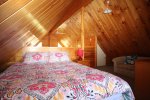 Upstairs loft has Queen bed and private toilet with room for more to sleep or kids to play.