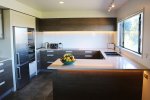 On the rear deck you will find beautiful macrocarpa outdoor furniture and the BBQ.